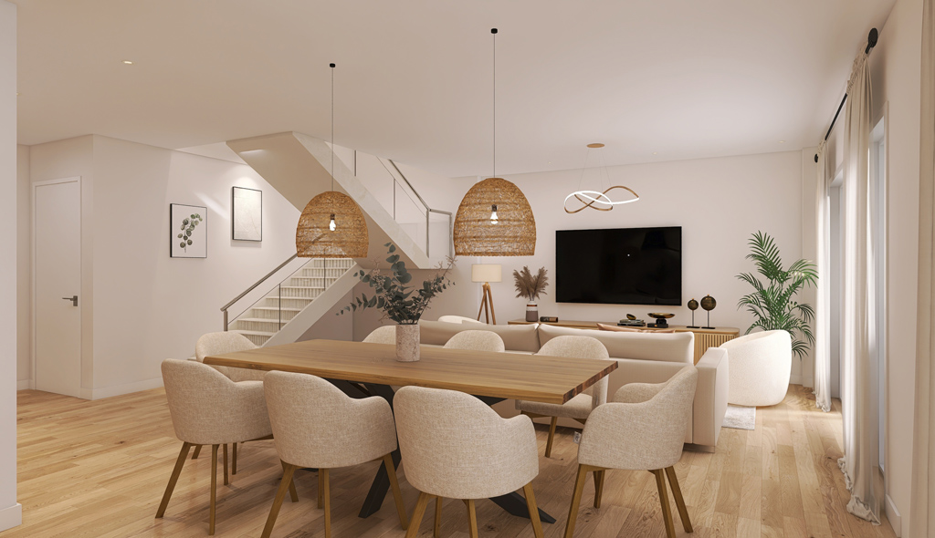 Hemos diseñado 2 tipologías diferentes aunque con un mismo concepto: comodidad y confortabilidad. Ambos diseños se desarrollan únicamente en dos plantas sobre la rasante. Se zonifican las viviendas de forma eficiente agrupando la zona de día en la planta baja y reservando la planta alta para zona de noche. Este concepto de vivienda es perfectamente funcional permitiendo el uso de la zona de día sin interferir el descanso en la planta superior.